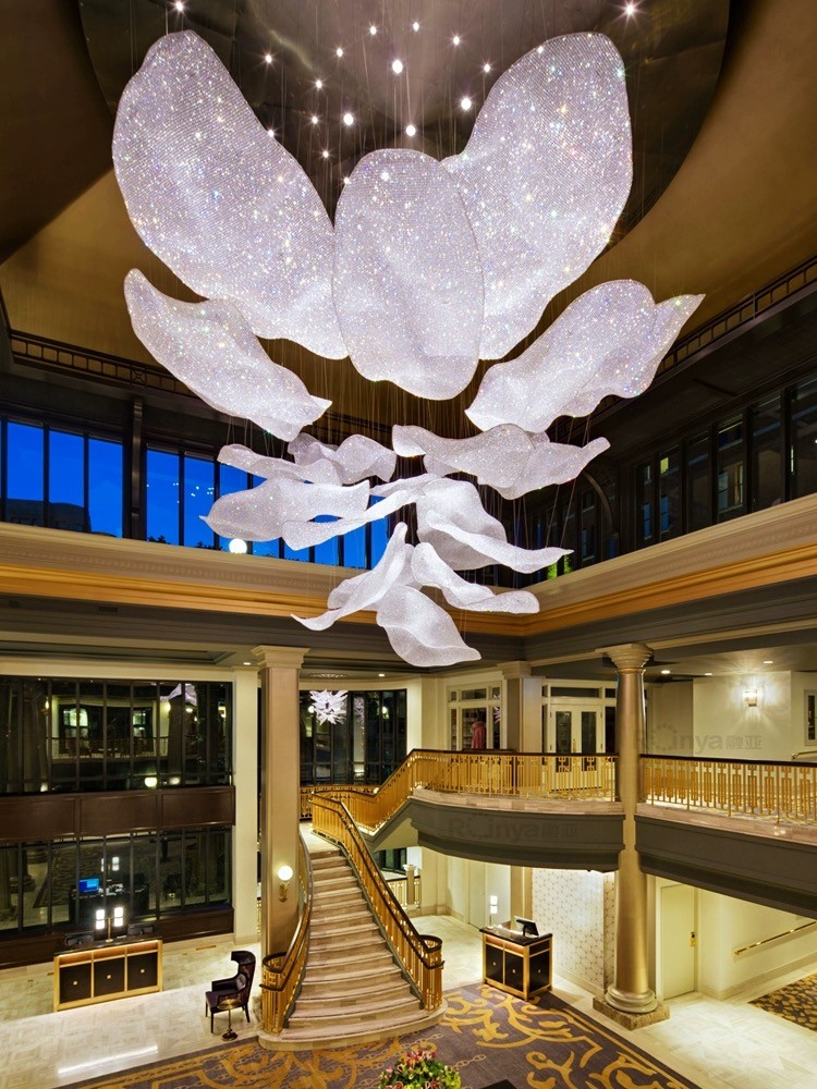পেশাদার কাস্টম চ্যান্ডেলিয়ার প্রস্তুতকারক হিসাবে, আমরা শিল্প প্রদর্শনী হলের মতো মহৎ জায়গাগুলির বায়ুমণ্ডল বাড়ানোর জন্য সাবধানে কাস্টমাইজড বিলাসবহুল স্ফটিক চ্যান্ডেলিয়ার তৈরি করতে প্রতিশ্রুতিবদ্ধ,সম্মেলন কেন্দ্র, কেটিভি, ক্লাব, রেস্টুরেন্ট, হোটেল লবি, ভোজের হল, ভিলা ইত্যাদি, এবং আপনি বিলাসিতা একটি অবস্থা মহিমান্বিত এবং সূক্ষ্মতা মধ্যে নিতে.আমাদের কাস্টমাইজড চ্যান্ডেলিয়ারটি অত্যাধুনিক কারিগরি দক্ষতার সাথে যুগোপযোগী কবজকে একত্রিত করে এমন একটি কেন্দ্রবিন্দু তৈরি করে যা মনোযোগ এবং প্রশংসা আকর্ষণ করবে.