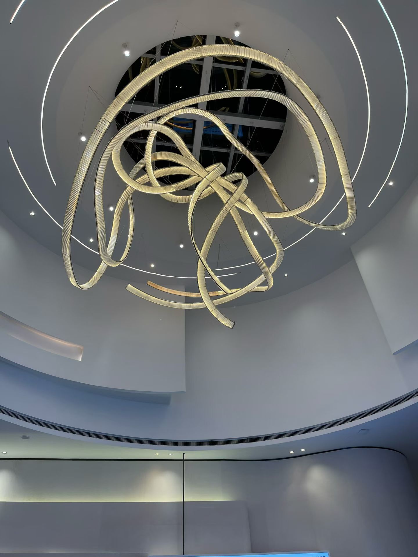 এই মার্জিত ঝাড়বাতিটিতে একটি অনন্য ফিতা-অনুপ্রাণিত নকশা রয়েছে যা উচ্চ-মানের স্ফটিক উপাদানের সাথে মিলিত, যা শিল্পকলা এবং পরিশীলিততার একটি নিখুঁত মিশ্রণ তৈরি করে। নন-স্ট্যান্ডার্ড প্রকল্পের জন্য সম্পূর্ণরূপে কাস্টমাইজযোগ্য, এটি ভোজ হল, ক্লাবহাউস, হোটেল লবি এবং বিক্রয় বিভাগের জন্য আদর্শ। স্ফটিক উপাদানগুলি উজ্জ্বল আলো প্রতিসরণ সরবরাহ করে, একটি বিলাসবহুল এবং আমন্ত্রণমূলক পরিবেশ তৈরি করে।